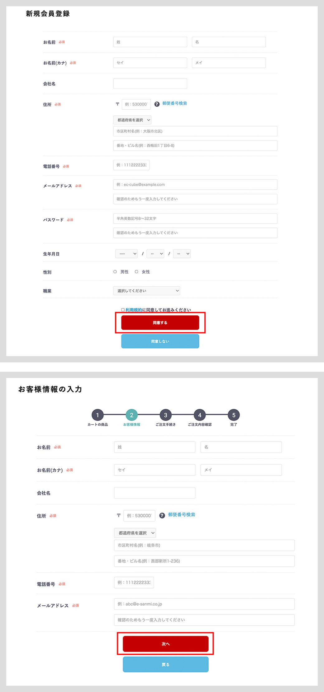 ゲスト購入されるお客様は、お客様情報をご入力いただき「次へ」ボタンを押してください。