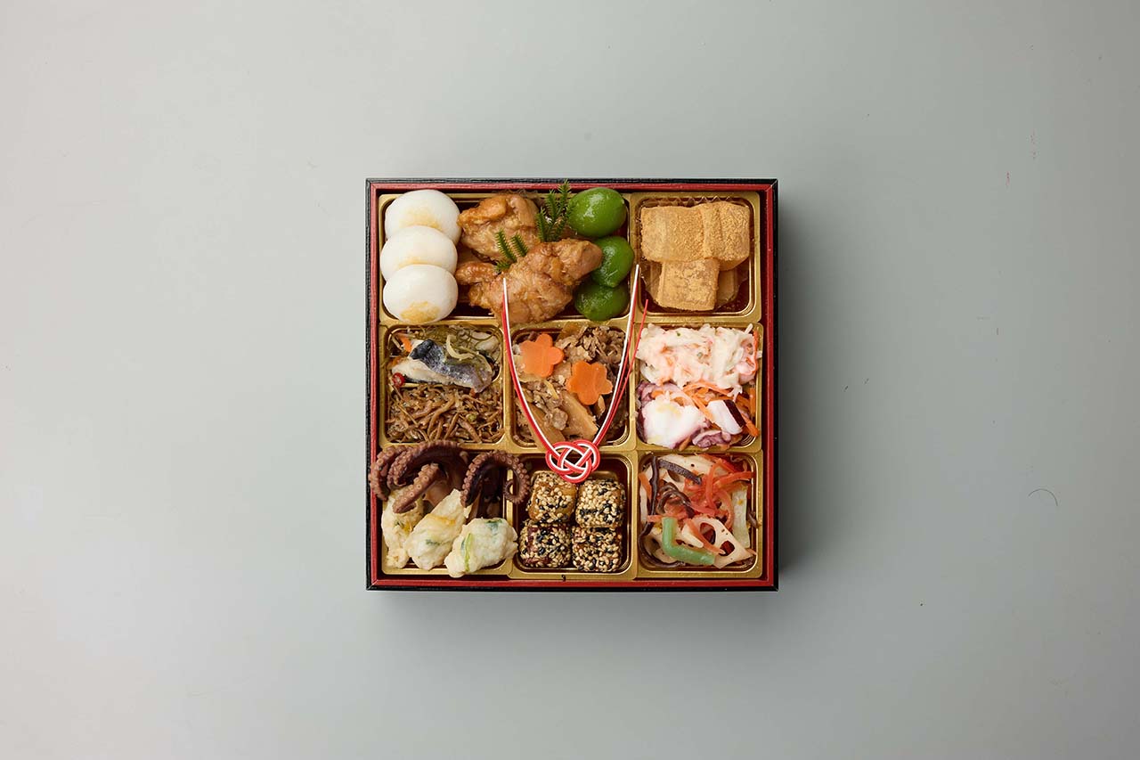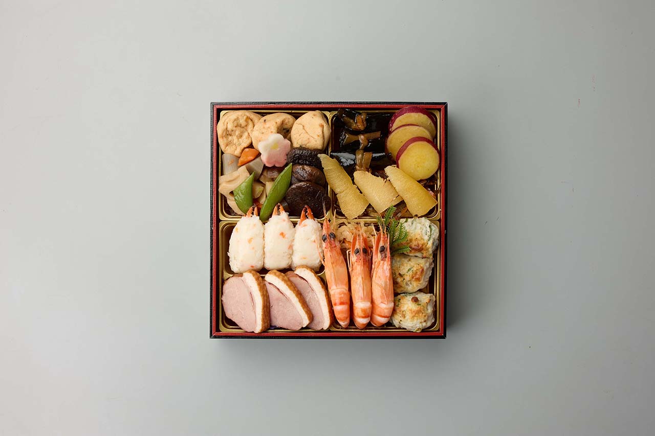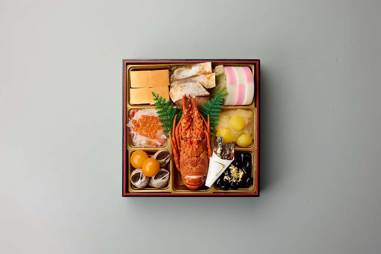 江口大将の思いが込められたおせちで、家庭的な味を表現しながらも京都割烹らしいメニューで、様々なお味を楽しみながら、新年をお祝い頂けます。お節の定番献立とロブスターを1尾盛り込んだ、お得で華やかな三段重お節です。特に、江口大将こだわりの逸品、ちりめん山椒をご賞味ください。