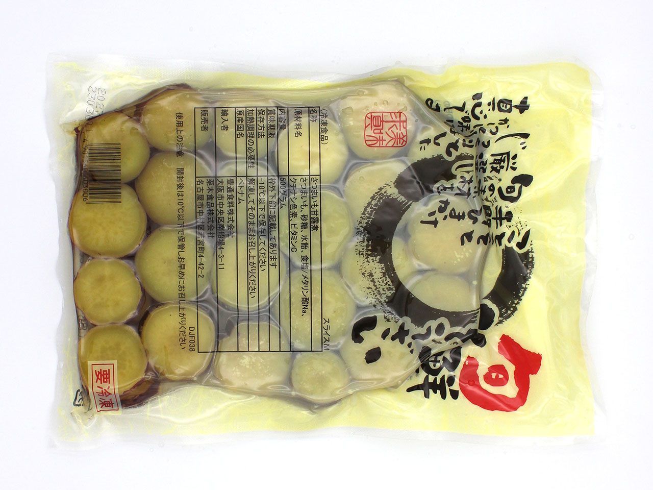 簡単調理、自然解凍オッケー。紅あずまのを使用しています。一口サイズで大変食べ易く、小鉢・前菜・オードブル等使い勝手が良い商品です。